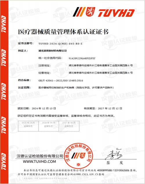 公司已經(jīng)通過ISO9001、ISO14001體系認證、TS16949認證、13485醫(yī)療體系認證,產(chǎn)品均通過SGS認證、“親膚性”測試。